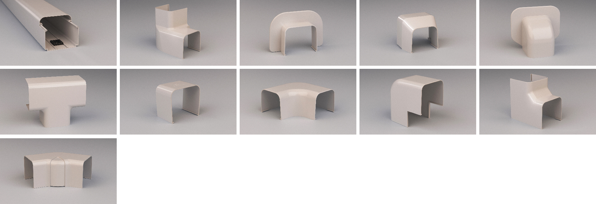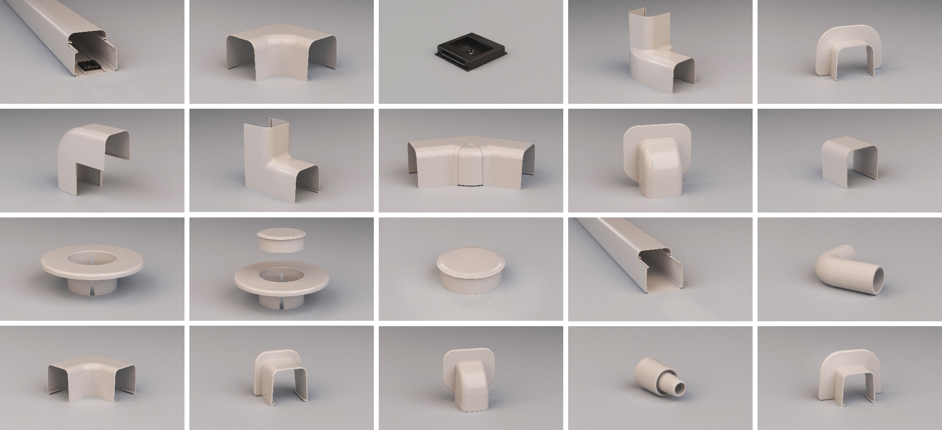 Criação digital de um catálogo de produtos, com duas dobras, para uma empresa referência no mercado brasileiro, em acabamentos plásticos para tubulações de split.