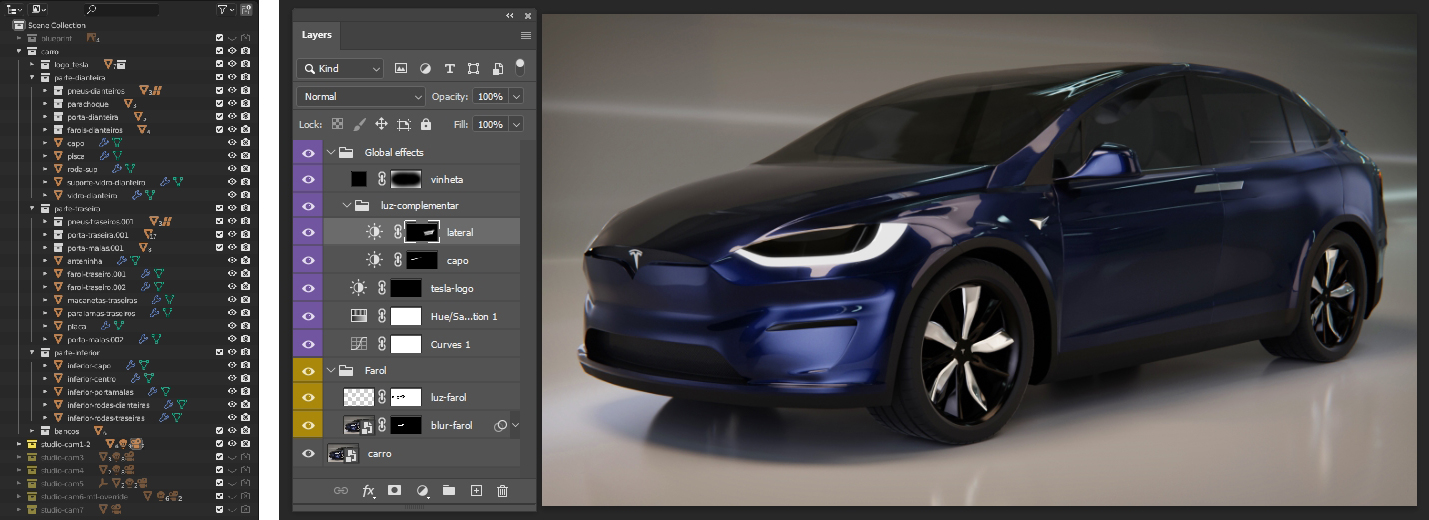 Desenvolvimento lookdev do carro Tesla Model X a partir de referências e blueprints, com o intuito de de proporcionar novos desafios sobre a modelagem 3D automotiva.