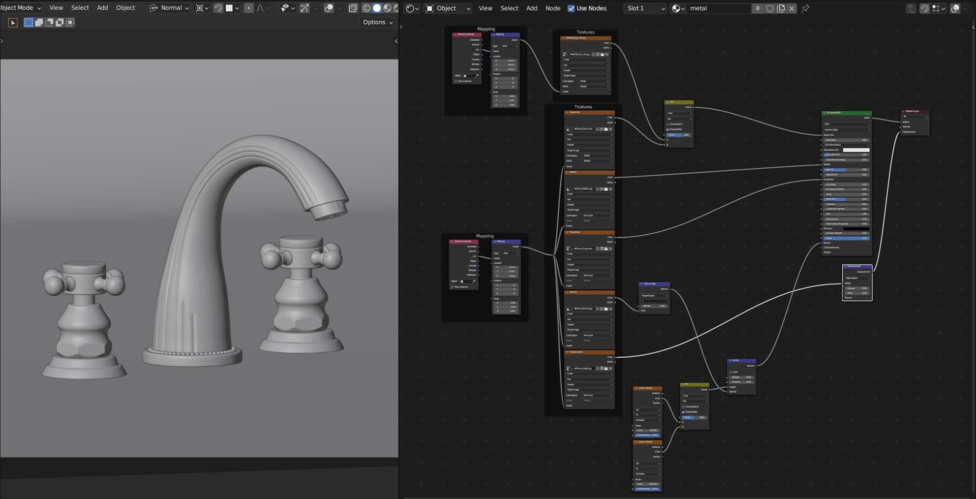 Lookdev de uma torneira clássica, a partir de referências, com o intuito de explorar novas técnicas de modelagem, mesclando objetos de diferentes formatos, sem perder a qualidade da malha do modelo.